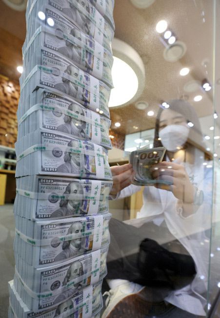 지난 4월 28일 서울 중구 하나은행 위변조대응센터에서 직원이 달러를 정리하고 있다. 연합뉴스 |