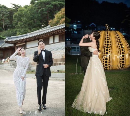공개된 사진 속에는 김윤지가 지난해 남편과 결혼식을 올리던 현장이 담겼다. 웨딩드레스를 입은 김윤지는 아름다운 자태를 뽐내는 것은 물론 남편과 달달한 분위기를 물씬 풍기며 시선을 모으고 있다.