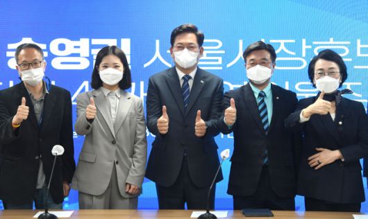 윤호중 민주당 비상대책위원장은 이날 서울 여의도 중앙당사에서 열린 송 후보와 서울지역 49개 지역위원장 간 간담회에서 “김대중, 노무현, 문재인 우리 당의 여러 지도자들께서는 모두 역경을 딛고 승리를 만들어냈다”며 “송영길 후보의 우직한 충심, 이것이 서울시민들께 마음으로 받아들여진다면 민주당의 지방선거 승리의 신화가 이어질 것”이라고 말했다.