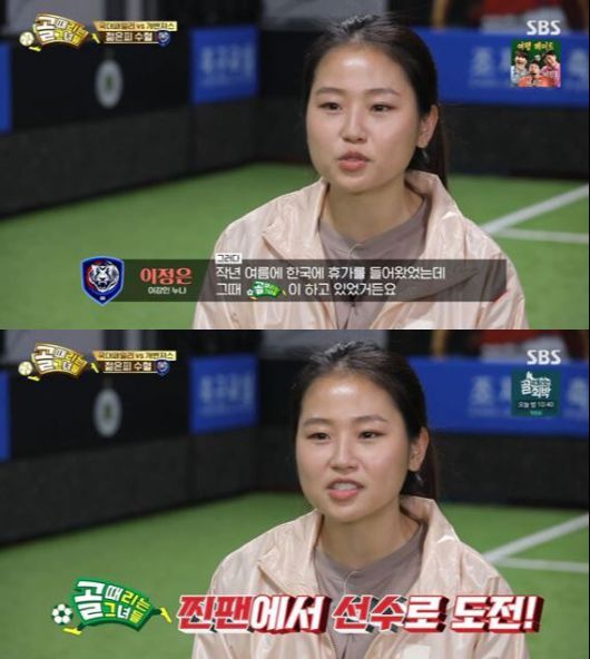 뛰어난 리프팅 실력을 선보인 이정은은 “어릴 때부터 엘리트 교육을 받은 강인이를 보고 자라기도 했고, 저도 운동하는 걸 원래 좋아했다”며 “아버지가 태권도장을 운영하셨는데, 골대가 있어서 축구하며 놀 수 있는 환경이었다. 어렸을 때는 축구를 접하기 쉬운 환경이었다”고 말했다.