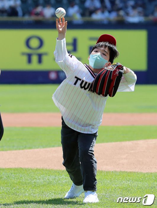 (서울=뉴스1) 김진환 기자 = 어린이날 100주년인 5일 오후 서울 송파구 잠실야구장에서 열린 프로야구 '2022 신한은행 SOL KBO리그' 두산 베어스와 LG 트윈스의 경기, 박시우 어린이가 시구를 하고 있다. 2022.5.5/뉴스1kwangshinQQ@news1.kr[© 뉴스1코리아(news1.kr), 무단 전재 및 재배포 금지]