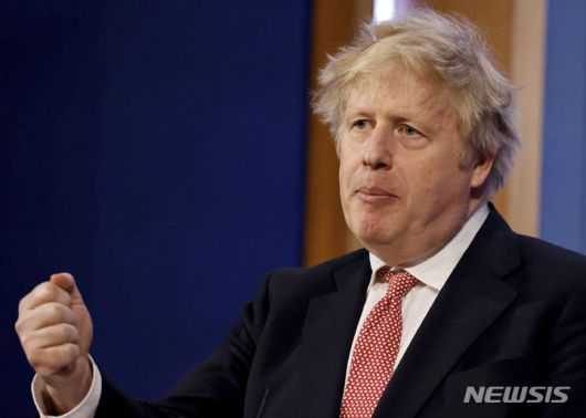 [런던=AP/뉴시스] 보리스 존슨 영국 총리가 21일(현지시간) 런던 총리관저에서 정부의 새로운 코로나19 장기 계획에 관해 말하고 있다. 존슨 총리는 이날 의회에 나와 24일부터 자가격리를 포함한 법적 방역 규정을 모두 폐지한다고 밝혔다. 그는 오미크론 변이가 덜 위험하다는 점을 강조하면서 정점도 지났기 때문에 막대한 비용을 들여 검사하고 규제할 필요가 없다고 설명했다. 2022.02.22. |