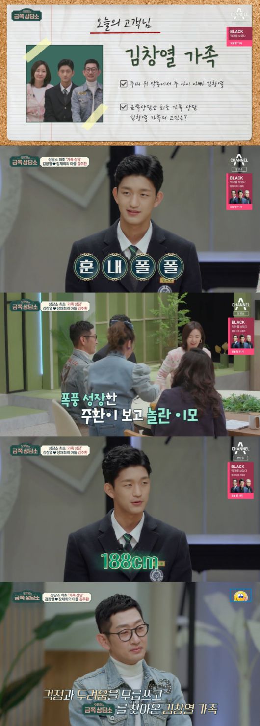 현재 고3이라는 주환 군은 심지어 키가 188cm라고 밝혔다. 김창렬은 "계속 커서 걱정이다. 먹는대로 바로 키로 간다"고 말해 부러움을 샀다.