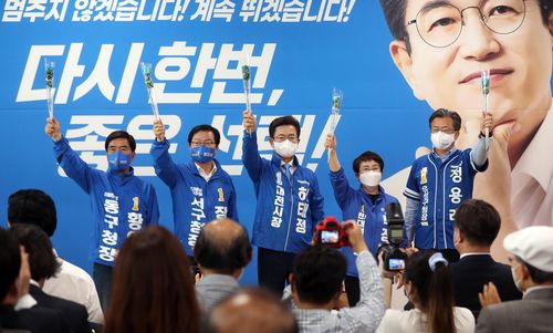 이날 행사에는 허태정 시장 후보를 비롯해 5개 구청장 후보와 시·구의원 후보들이 대부분 참석했다. 윤호중 민주당 공동비상대책위원장과 박영순·이상민·조승래·황운하·장철민 의원 등도 자리했다.