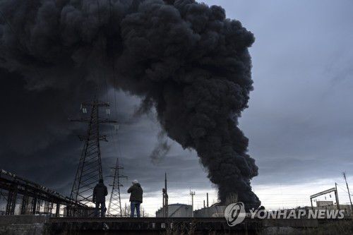 러군 미사일 공격에 우크라 오데사 상공에 치솟는 검은 연기 |