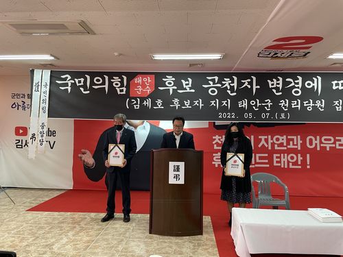 (태안=연합뉴스) 정찬욱 기자 = 국민의힘 충남 태안군수 후보 공천을 둘러싼 내홍이 가라앉지 않고 있다.
