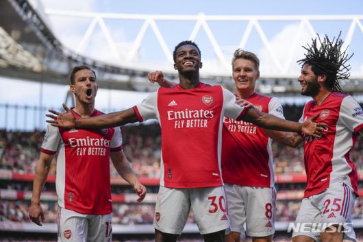 아스날은 8일(한국시간) 영국 런던 에미리츠 스타디움에서 열린 리즈 유나이티드와 2021~22 잉글랜드 프리미어리그(EPL) 홈경기에서 전반 5분과 10분에 연속골을 터뜨린 에디 은케티아의 활약에 힘입어 2-1로 이겼다.