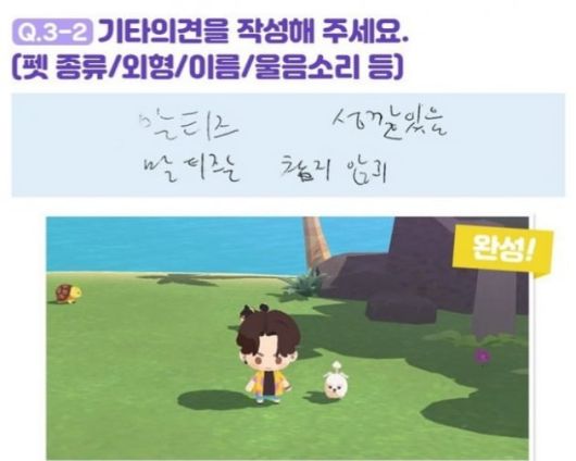 그러면서 '키우고 있는 반려 동물의 종류' 에 대해 "강아지 말티즈", '해당 반려 동물의 이름'에 "구름이", 반려 동물의 특징에 "귀엽지만 한 성깔 있다" 등 자신의 반려견 '구름이'를 '펫'의 모티브로 삼으며 친근함과 이색적인 매력을 느끼게 했다.