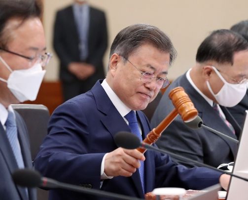 문재인 대통령이 마지막 국무회의에서 검수완박 법안에 거부권을 행사하지 않고 공포, 의결했다. 문 대통령은 "검경 수사권 조정과 검찰개혁은 역사적·시대적 소명에 부합하는 정책 방향"이라며 법안 처리에 힘을 실었다. 연합뉴스