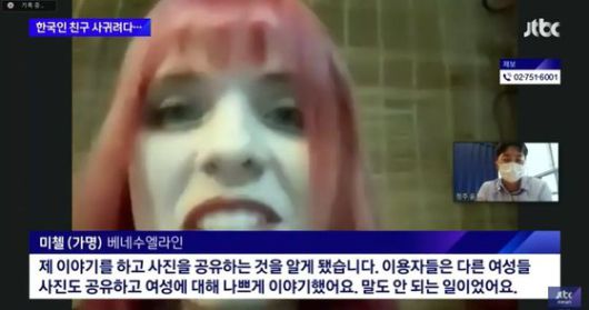 K팝 팬인 베네수엘라 여성 미첼(가명) 씨도 이 앱에 가입해서 한국인 친구를 사귀었다가 피해를 보았다. “친해지고 싶다”기에 한국인 친구에게 사진을 줬는데, 타인과 사진을 공유하며 성희롱까지 했다는 것이다.