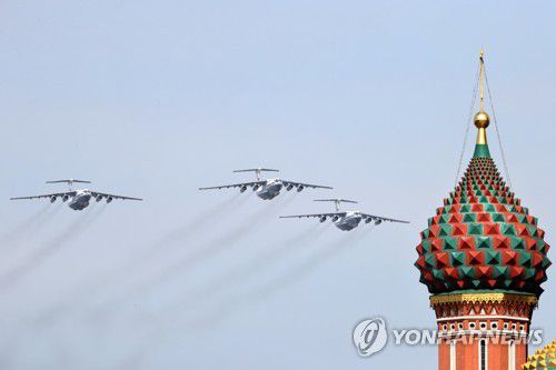(런던=연합뉴스) 최윤정 특파원 = 러시아가 2차 세계대전 종전기념일(러시아 '전승절')을 맞아 모스크바 붉은광장에서 개최한 열병식에서 악천후를 이유로 공군 공중 퍼레이드를 막판에 취소하면서 그 배경을 놓고 의문이 제기되고 있다.