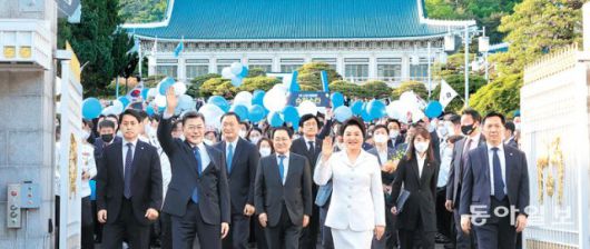 文, 청와대 마지막 퇴근 문재인 대통령과 김정숙 여사가 임기 마지막 날인 9일 오후 6시 청와대 직원들의 배웅을 받으며 청와대를 나선 뒤 환송하는 시민들을 향해 손을 흔들고 있다. 양회성 기자 yohan@donga.com |