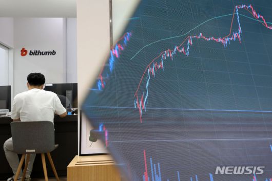 [서울=뉴시스] 백동현 기자 = 10일 오후 서울 서초구 빗썸 고객지원센터 전광판에 비트코인 시세가 표시되고 있다. 전날 CNBC에 따르면 비트코인은 12% 이상 하락해 3만달러 아래로 떨어졌다. 비트코인이 3만달러 아래로 떨어진 것은 지난해 7월 이후 처음이다. 2022.05.10. livertrent@newsis.com