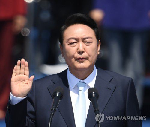 (서울=연합뉴스) 대한민국의 국정을 5년간 꾸려갈 윤석열 정부가 10일 출범했다. '다시 대한민국, 새로운 국민의 나라'라는 슬로건을 내걸었다. 윤 대통령은 이날 오전 10시 국립서울현충원을 찾아 헌화하고 분향한 뒤 오전 11시 국회에서 4만여 명의 축하 속에 공식 취임했다. 윤 대통령은 취임사에서 "우리나라는 지나친 양극화와 사회 갈등이 자유와 민주주의를 위협할 뿐 아니라 사회 발전의 발목을 잡고 있다"고 진단했다. 윤 대통령은 "이 문제를 도약과 빠른 성장을 이룩하지 않고는 해결하기 어렵다. 도약과 빠른 성장은 오로지 과학과 기술, 혁신에 의해 이뤄낼 수 있다"고 강조했다. 과학과 기술, 혁신의 과정에서 다른 국가들과 협력하고 연대해야 한다는 점도 밝혔다. 윤 대통령은 앞서 이날 0시 서울 용산 대통령 집무실 지하에 있는 국가위기관리센터 상황실에서 국군통수권을 넘겨받으며 집무를 시작했다.
