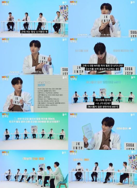 최근 방탄소년단은 공식 유튜브 채널 '방탄TV'(BANGTANTV)를 통해 'BTS MBTI Lab 1'라는 제목으로 멤버 7인이 MBTI(성격유형검사)를 진행하는 모습이 담긴 영상을 공개했다.