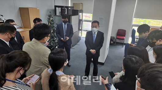 이종호 과학기술정보통신부 장관이 과기정통부 기자실에서 기자들과 질의응답 시간을 갖고 있다.(사진=강민구 기자) |