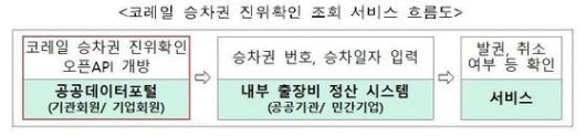 한국철도(코레일)가 행정안전부와 협업해 ‘철도 승차권 진위확인 조회 서비스’를 공공데이터포털을 통해 12일부터 제공한다.