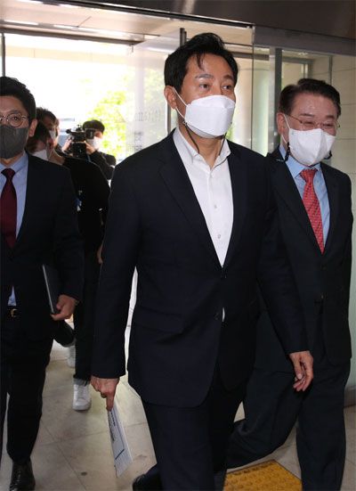오세훈 서울시장이 12일 오전 서울 종로구 서울시선거관리위원회에서 다음 달 1일 치러지는 제8회 전국동시지방선거 후보자 등록을 위해 건물로 들어서고 있다. 2022.5.12 [사진 = 연합뉴스] |