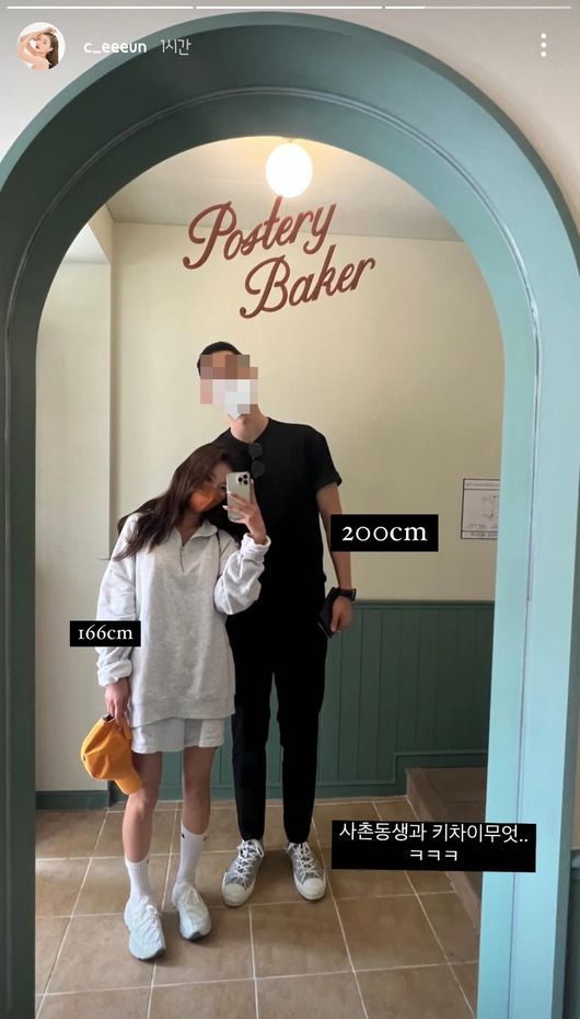 이채은은 12일 자신의 인스타그램 스토리에 ‘사촌동생과 키 차이 무엇’이라는 글과 사진을 게재했다.