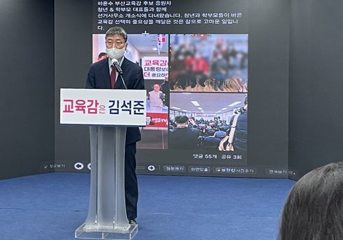 (부산=연합뉴스) 김선호 기자 = 김석준 부산교육감 후보는 최근 온·오프라인 상의 허위사실 유포와 악의적 비방 행위, 가짜 미투 의혹 제기 등 11건을 신고·고발했다고 12일 밝혔다.