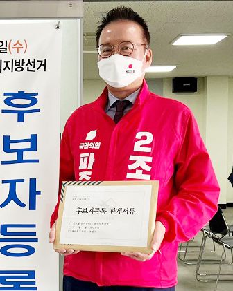 (파주=연합뉴스) 노승혁 기자 = 국민의힘 조병국 파주시장 후보는 12일 후보자 등록을 마친 후 보도자료를 통해 "행복한 파주 건설을 위해 제대로 일하겠다"고 밝혔다.