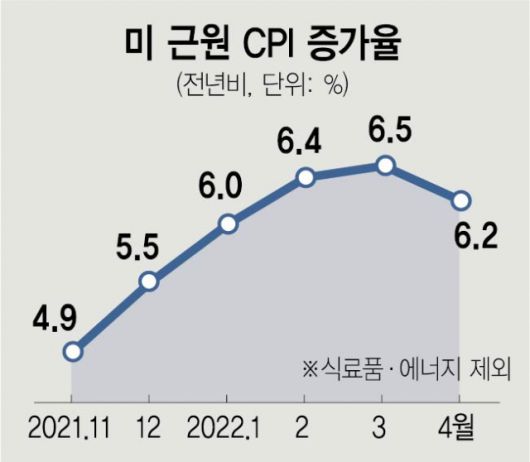 시장이 이처럼 흔들린 것은 고물가가 생각보다 오래갈 수 있다는 판단 때문이다. 에너지와 식품 등 변동성이 큰 항목을 뺀 근원 CPI의 경우 4월에 전월 대비 0.6% 올라 1월부터 이어져온 둔화세가 반전됐다. 로버트 파블리크 다코타웰스 선임포트폴리오매니저는 “근원 CPI가 특히 문제였는데 전월 대비로는 3월 수치(0.3%)의 두 배였다”며 “이것이 인플레이션이 아직 정점에 도달하지 않았을 수도 있음을 의미하며 시장에 큰 우려를 줄 것 같다”고 분석했다.