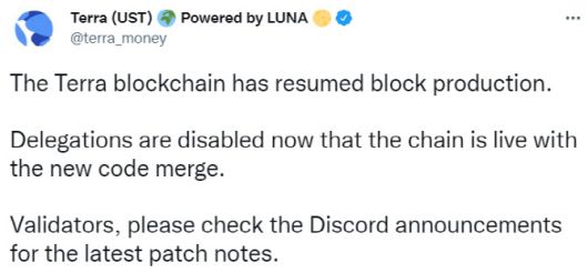 테라폼랩스는 12일(현지시간) 공식 트위터를 통해 루나와 UST가 거래되는 블록체인 네트워크에 대한 거버넌스 공격을 막기 위해 시스템 중단을 발표했다. 테라폼랩스는 그 이후 다시 공지를 통해 “테라 블록체인을 재개한다”고 알렸다.