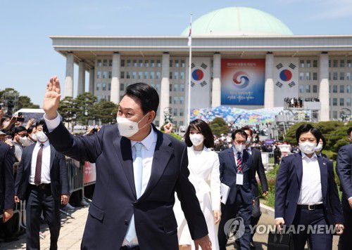 (서울=연합뉴스) 정수연 기자 = 윤석열 대통령의 취임 시기와 맞물려 새로운 여당인 국민의힘 지지율이 7년 6개월 만에 최고치를 기록했다는 여론조사 결과가 13일 나왔다.