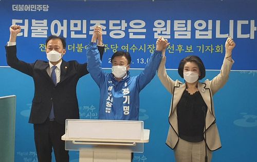 민주당 여수시장 경선에서는 정 후보가 권오봉 현 시장을 꺾고 최종 후보로 선정됐다.