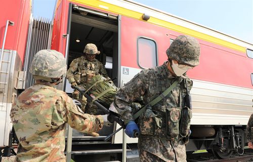 군병원 열차 활용 환자후송훈련하는 한미 장병들 |