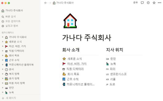 근무 수칙을 확인하기 위해 보고 있던 회의록을 닫고 수칙 파일을 열어 확인하다가 의문 사항이 생기면 다시 메신저를 키고 직원을 찾을 필요가 없이, 하나의 페이지에서 업무를 이어갈 수 있다는 점이 노션의 가장 큰 무기다.