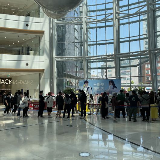 서울 영등포구 타임스퀘어에서 포켓몬X스파오 콜라보 티셔츠를 사기 위해 사람들이 줄을 서있다. (사진=이랜드 제공) *재판매 및 DB 금지 |
