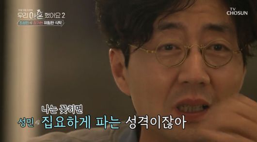 조성민은 "그땐 우리 골이 너무 깊었다. 지금 하는 건 변명이 아니다"라며 "정말 못 먹겠더라. 한 두달 정도 밥을 못 먹는 게 있었다"라고 말했다. 이어 조성민은 "당신이 싫어서 그랬던 건 아니고 다른 이유는 크게 없었다. 밥을 다 치우고 나면 식욕이 생겨서 그랬던 거다"라고 변명했다.