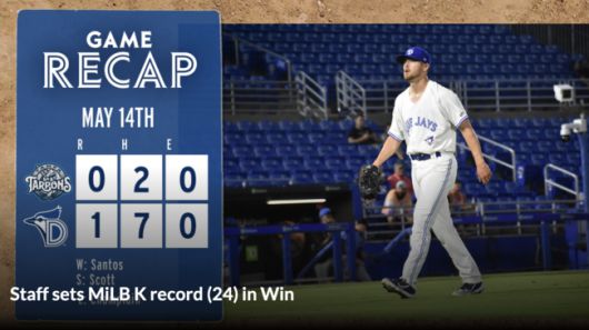 더니든은 15일(이하 한국시간) 미국 플로리다주 더니든 TD볼파크에서 열린 탬파와의 경기에서 1-0으로 승리했는데, 세 명의 투수가 완봉승을 합작하며 24탈삼진을 기록했다.