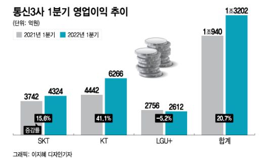 [머니투데이 변휘 기자] [1Q, 3사 합산 영업익 1.3조원…전년比 20.7%↑