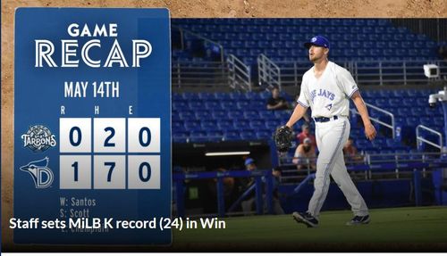 더니든 블루제이스가 한 경기 24탈삼진을 뽑아 마이너리그 최다기록을 세웠다. |