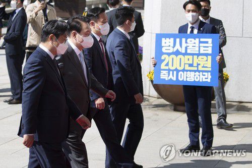 앞서 윤 대통령은 후보 시절 취임 즉시 병사 월급을 200만원까지 인상하겠다는 공약을 제시한 바 있다.