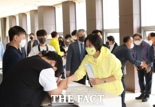 [더팩트ㅣ인천=차성민 기자] 정의당 이정미 인천시장 후보가 16일 인천대학교를 방문, 소통 행보를 이어갔다.