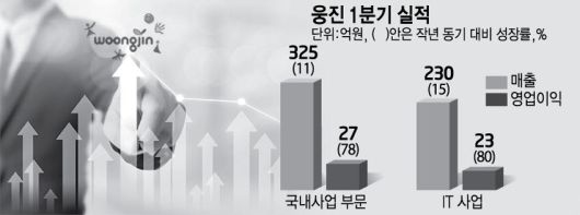 웅진이 1분기 정보기술(IT) 사업에서 괄목할 성장을 기록했다.