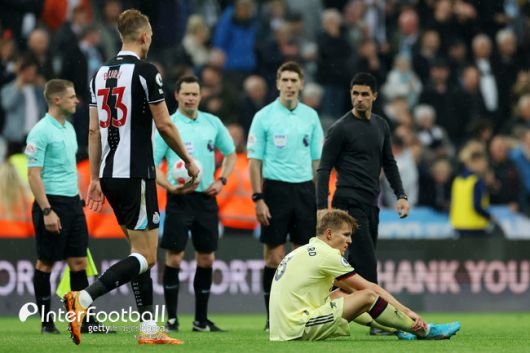 그다음으로 17일 아스널이 나서게 됐다. 아스널은 뉴캐슬 유나이티드 원정에서 승리하면 최종전에서 유리한 입장으로 임할 수 있었다. 무승부는 안 됐다. 이에 미켈 아르테타 감독은 '의심 상태'였던 가브리엘 마갈량이스, 벤 화이트 등을 투입하며 뉴캐슬전을 맞이했다. 하지만 경기 내내 뉴캐슬의 압박에 고전했고 중원에서 볼 간수가 잘 안됨에 따라 기회를 여럿 헌납했다. 설상가상 후반 10분 화이트의 자책골, 그리고 후반 40분 추가 실점을 내주면서 0-2로 무릎 꿇었다.