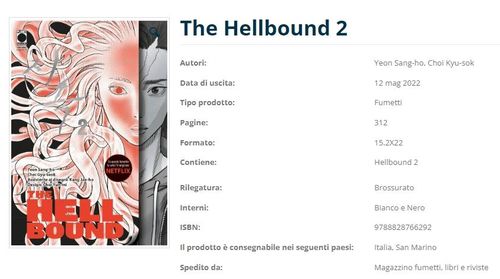 17일 이탈리아 출판사 파니니 코믹스 홈페이지에 따르면 해당 출판사는 최근 웹툰 '지옥'을 총 2권짜리 단행본으로 펴냈다. 1권은 지난달 28일, 2권은 이달 12일부터 온라인과 오프라인 서점에서 판매 중이다.