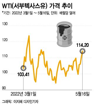 최근 국제유가는 유럽연합(EU)의 러시아산 원유 수입금지 조치에 따른 수급 불안으로 급등했다. 여기에 중국의 상하이 봉쇄 조치 완화로 원유 수요가 회복할 것이라는 기대감까지 겹쳐 오름세를 키우고 있다.