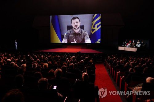 칸 영화제 개막식서 화상 연설하는 젤렌스키 |