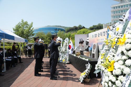 (무안=연합뉴스) 장아름 기자 = 제42주년 5·18 민주화운동 기념일인 18일 전남경찰청 안병하공원에서 5·18 순직 경찰관 추도식이 열렸다.