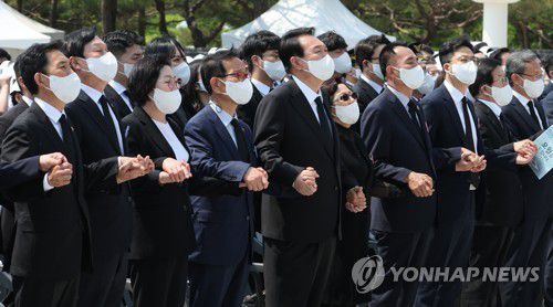(서울·광주=연합뉴스) 이슬기 정수연 홍준석 박형빈 기자 = 18일 오전 광주 국립 5·18 민주묘지에서 열린 제42주년 5·18 민주화운동 기념식에는 여야 의원들이 대거 참석했다.