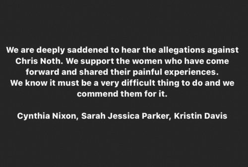 "우리는 크리스 노스에 대한 혐의를 듣게 되어 매우 슬프다"라고 파커를 비롯한 출연 배우들인 신시아 닉슨, 크리스틴 데이비스가 성명을 발표했다.