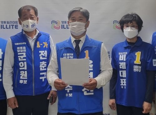 (영동=연합뉴스) 심규석 기자 = 공식 선거운동 첫 날부터 충북 영동군수 선거의 네거티브·비방전이 가열되는 양상이다.
