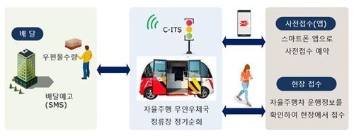 (서울=연합뉴스) 최현석 기자 = 과학기술정보통신부 우정사업본부는 ICT 신기술로 고도화된 자율주행 무인 접수 및 배달서비스를 내년부터 상용화할 계획이라고 19일 밝혔다.