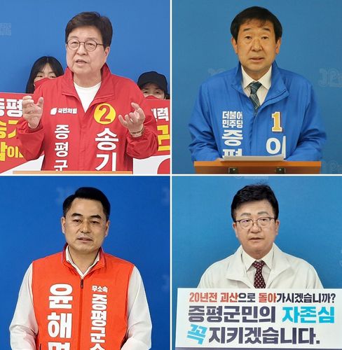 왼쪽부터 시계방향으로 송기윤·이재영·민광준·윤해명 증평군수 후보 |