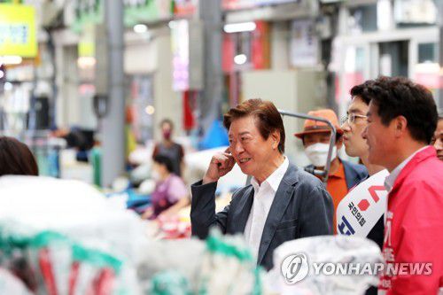 (포항=연합뉴스) 손대성 기자 = 6·1 지방선거 공식 선거운동이 시작된 19일 경북 포항시 북구 죽도동 죽도시장에서 국민의힘 후보를 응원하기 위해 온 탤런트 이정길씨(왼쪽)가 시민과 얘기하고 있다. 2022.5.19 sds123@yna.co.kr ▶제보는 카카오톡 okjebo▶연합뉴스 앱 지금 바로 다운받기~▶네이버 연합뉴스 채널 구독하기 <저작권자(c)연합뉴스. 무단전재-재배포금지.>